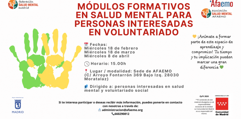 👥 Dirigido a: personas interesadas en salud mental y voluntariado social (no es necesario tener formación previa en salud mental)