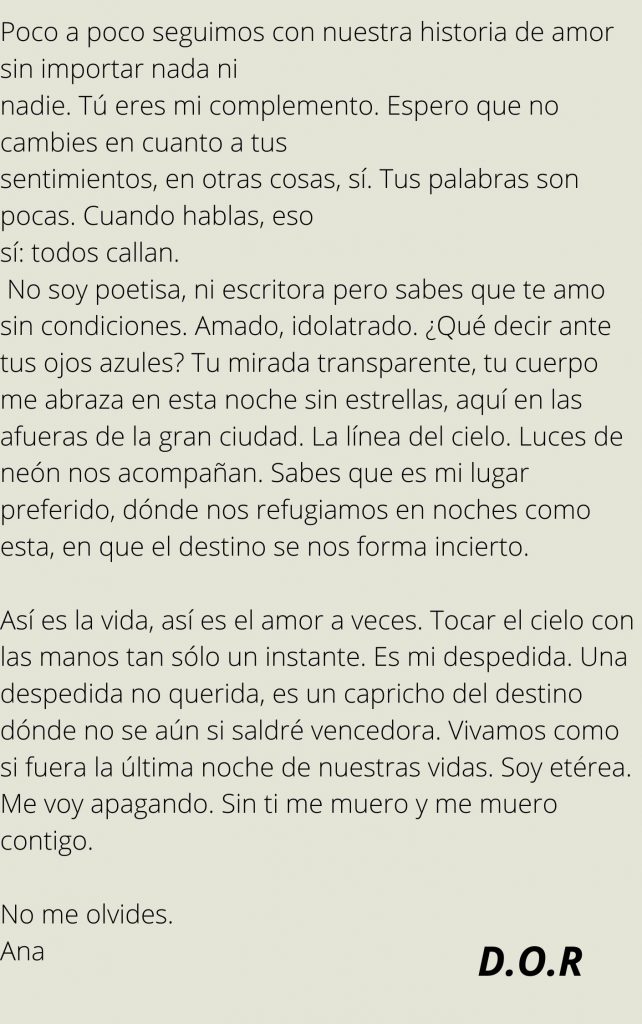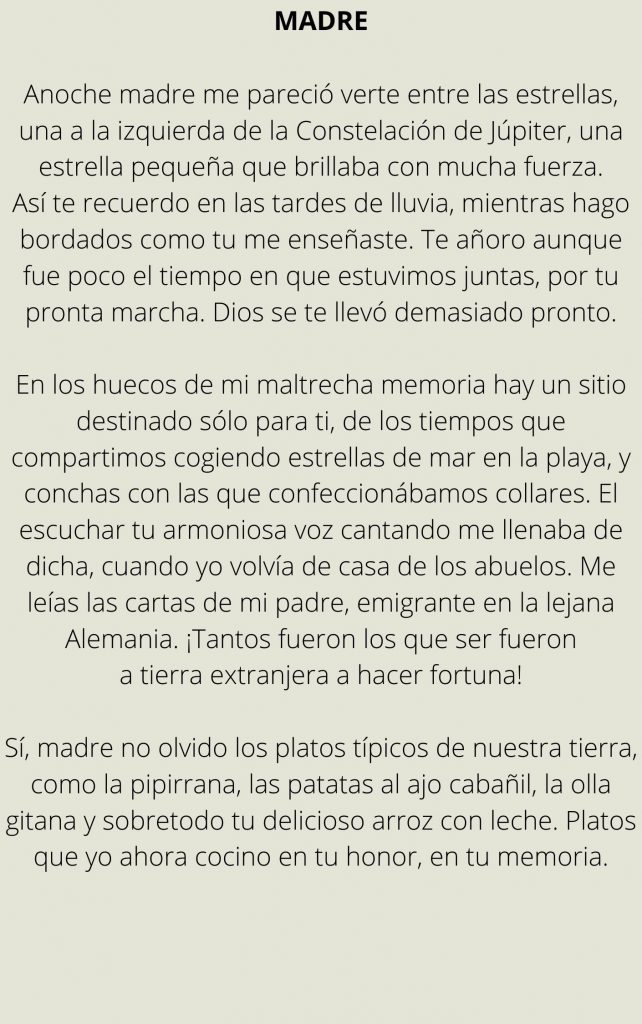 Tenemos el placer de publicar alguno de los magníficos escritos que se van realizando desde el TALLER DE ESCRITURA CREATIVA para que todos y todas podáis disfrutar de esta maravillosa lectura.