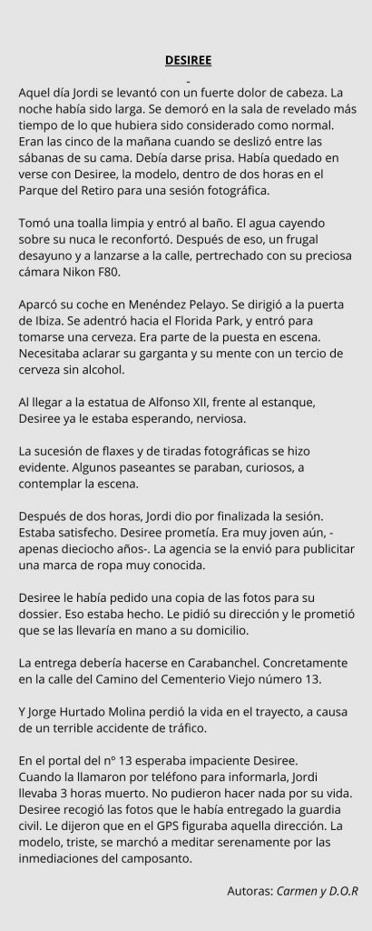 Vamos con la publicación en nuestro BLOG de nuevos relatos que nos han llegado.