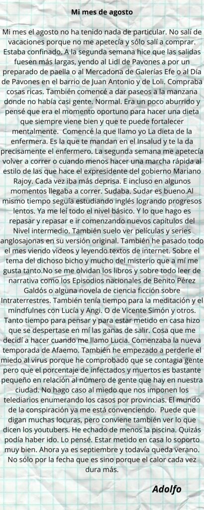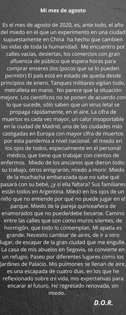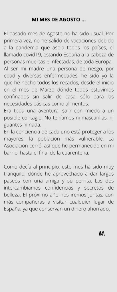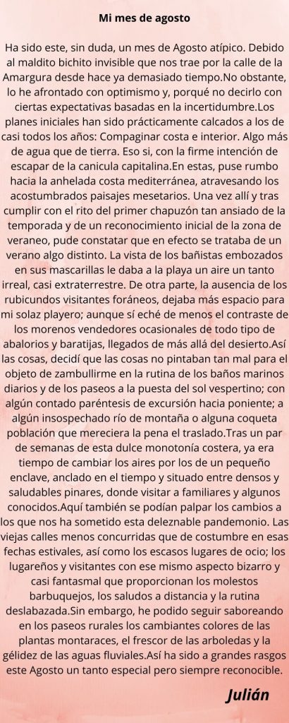 BLOG ESCRITURA CREATIVA: «Mi mes de agosto»