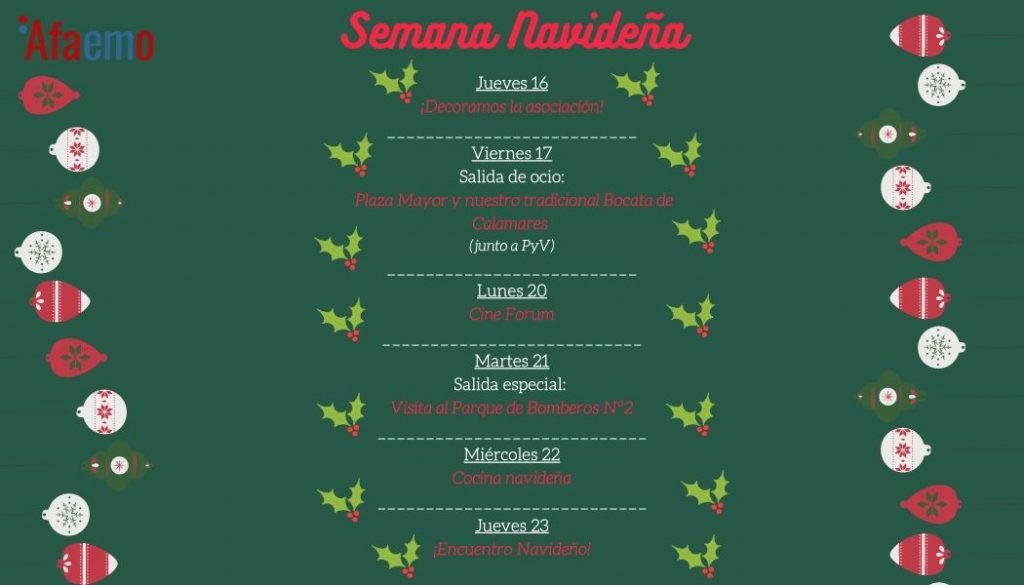 Os dejamos igualmente el programa de actividades de la semana navideña que empezamos en AFAEMO.