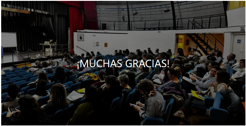 Queremos dar las gracias a todas las personas que han asistido, a la Junta Municipal por cedernos de nuevo el espacio y a sus técnicos de sonido por ayudarnos en toda la parte audiovisual, a los/as compañeras que han colaborado con la elaboración de los materiales desde el CRL de Móstoles y, sobre todo queremos dar las gracias a todas las personas que con su implicación y gran dedicación han hecho una vez más que esto haya sido posible: