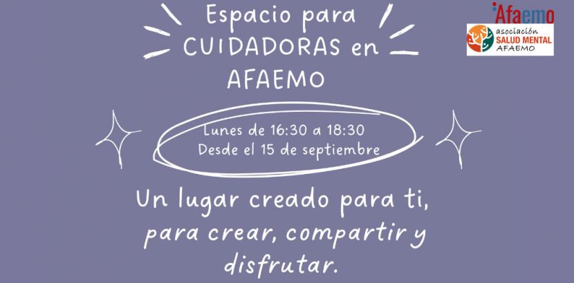 Querida cuidadora, En AFAEMO hemos creado un espacio especialmente para ti, un lugar seguro y libre de juicios donde podrás crear, compartir y disfrutar en compañía de otras mujeres cuidadoras. Nos reuniéremos todos los lunes de 16:30 a 18:30, a partir del 15 de septiembre. ¿Qué encontrarás aquí? Este es un lugar donde puedes estar como estés, conectar con otras […]