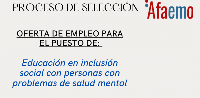 Descripción: Desde AFAEMO, entidad dedicada a prestar apoyo a personas con problemas de salud mental desde el ámbito social, estamos buscando una persona para cubrir las funciones de intervención como educador/a para la inclusión social que se encargue de la puesta en marcha de espacios grupales de rehabilitación psicosocial y apoyo comunitario con el colectivo […]