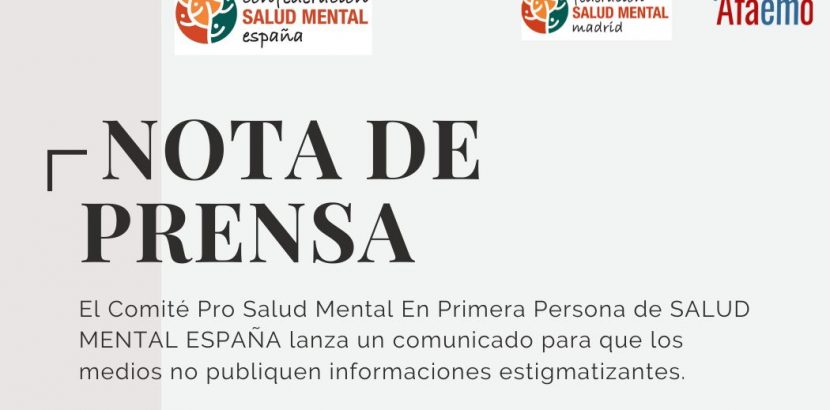 El Comité Pro Salud Mental En Primera Persona de SALUD MENTAL ESPAÑA lanza un comunicado para que los medios no publiquen informaciones estigmatizantes. El Comité Pro Salud Mental de SALUD MENTAL ESPAÑA, formado por personas con experiencia propia, pide a los medios de comunicación, a través de este comunicado, que no perpetúen el estigma y el rechazo a […]