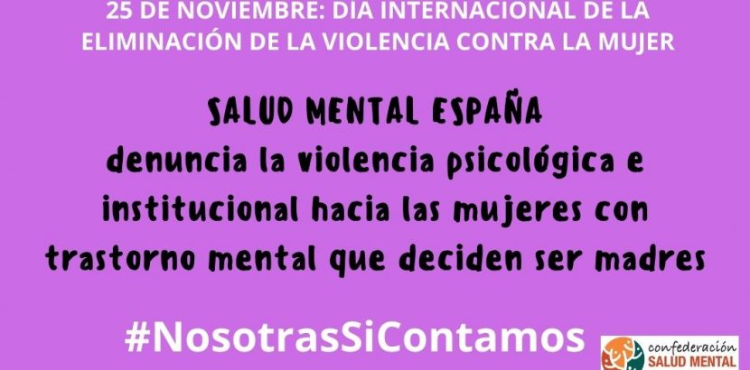 Nota de Prensa Hoy, 25 de noviembre, se celebra el Día Internacional de la Eliminación de la Violencia contra la Mujer SALUD MENTAL ESPAÑA denuncia la violencia psicológica e institucional hacia las mujeres con trastorno mental que deciden ser madres A pesar de que toda persona tiene derecho a ser informada detalladamente sobre su diagnóstico […]