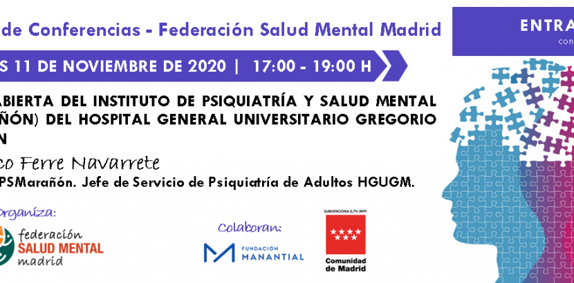 La Federación Salud Mental Madrid continúa con su IV Ciclo de Conferencias de manera virtual a través de la plataforma Zoom. El próximo miércoles 11 de noviembre de 17:00 a 19:00 horas, se llevará a cabo la conferencia «Unidad Abierta del Instituto de Psiquiatría y Salud Mental (IPSMarañón) del Hospital General Universitario Gregorio Marañon» a cargo de Francisco Ferre Navarrete, Codirector IPSMarañón, Jefe de Servicio […]